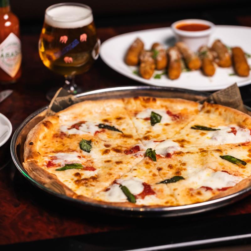 Grilled carrot, zucchini, red pepper, opal basil, mozzarella cheese, cauliflower crust.