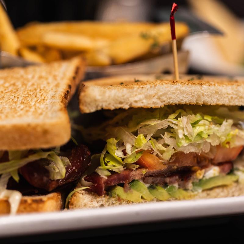 Applewood bacon, lettuce, avocado, tomato, mayo, sourdough bread.